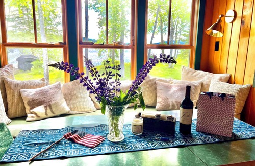 Our lakeside cabin offers a perfect haven on Bonney Point and Smith's Cove. The cove provides calm waters for water activities such as swimming, kayaking and paddle boarding. We have resident loons and beavers in the cove which offer wildlife entertainment. Enjoy water views from most rooms in the house and dining on the lakeside deck with a gas grill and dining table. Hammocks overlooking the lake and a private dock on the water invite you to relax and take in the beauty of the lake. We have two bedrooms both with new queen beds and upscale linens and down comforters. The sleeping porch has a double bed and the loft, accessed by a ladder, has two twin mattress. The cottage was rebuilt in 2005 and offers rustic charm with some newer amenities including an oversized shower in the and a new washer dryer for convenience. We are open to welcoming one well-behaved pet. For off-season, the camp is winterized with a gas heater as well as a wood stove.