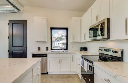 KITCHEN: Refrigerator, Keurig coffee maker, stove/oven, microwave, toaster, dishwasher, dishware & flatware, cooking basics