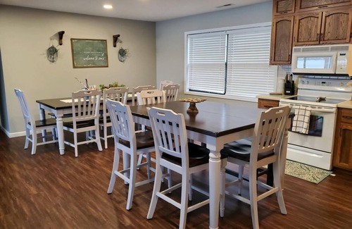 This lake area is calm and safe for swimming, tubing, and skiing. We have referrals for boat rentals and they will bring it to the dock and pick it up. Enjoy the views from the back decks, grilling and sipping on your favorite beverage. Plenty of room for tanning or sitting in the shade. The firepit is a big hit for telling stories, sharing memories, having smores. Firewood is provided. Having fun inside with the pool table, shuffleboard, and 3 smart TV's.