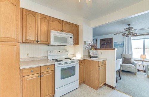 Come for the lake and stay for the views at this vacation rental in Pelican Rapids! Boasting a 2-bed, 1-bath main house and a 2-bed, 1-bath guest house, this charming abode on Pelican Lake provides the ideal respite. Spend sunny days jumping off the private dock for an afternoon swim, and each evening, watch the sunset dye blue skies gold from the front steps. When the stars come out, gather around the backyard's wood-burning fire pit to exchange stories and toast marshmallows.