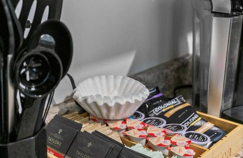 Enjoy your morning beverage of choice at the coffee and tea bar! A Keurig and a 12 cup coffee maker are available; we provide a starter set of ground coffee, k-cups, tea, creamer, sugar and stevia!