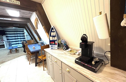 Tons of space , living room has three full couches, dining comfortably for 6, lake views from entire main floor. Folding chairs under stairs for use at firepit. 4 life vests provided in closet by front door. Life vests must be worn while using our water toys. Lake use towels are in the closets, please use those for mud not white guest towels. Kayaks, a canoe, & paddles for use on dock. Please re-secure after use. Children are never to be left unattended or unsupervised at any time on property or dock. We do have a Ring Door Bell for security. Please have fun or relax!