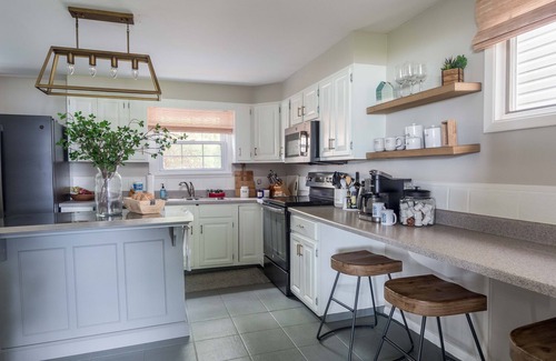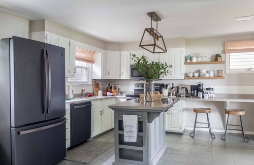 Updated kitchen with new appliances (2021), fully stocked with everything you’ll need, plus two closet pantries