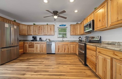 If you're looking for exceptional wedding accommodation near Kentucky Lake, the Lakefront Retreat w/Pvt Dock, Game Room, Hot Tub, and Kayaks is the ideal spot. This spacious and amenity-rich property provides an unforgettable setting for your celebration.