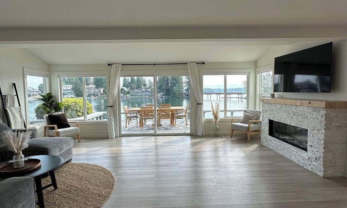 Lakefront Retreat with Private Dock's, Stunning views, Fireplaces and hot tub! | House in Bonney Lake
