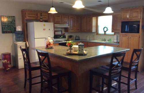 A great, quiet spot for the whole family whether you enjoy skiing, fishing or just some peace and quiet. When we remodeled this 7,200 square foot home in 2017, we chose to have the option to lock off and rent a portion of both the downstairs and upstairs. The downstairs has a fully functional kitchen, living room, dining room, a master bedroom with a King bed, a bedroom with two twin beds, one bath, a queen sleeper sofa and a wood-burning fireplace. The upstairs has 8 more beds, another fully functional kitchen and full bath; foosball and air hockey table, sitting area and PS2 game console. NOTE: PRICE VARIES DEPENDING ON THE SPACE YOU REQUIRE. THE PRICE QUOTED IS ONLY FOR THE DOWNSTAIRS. IF YOU NEED THE UPSTAIRS AREA, PLEASE CONTACT US AND WE WILL EDIT THE QUOTE TO INCLUDE THE EXTRA SPACE AND CLEANING FEE. If you do not need the additional space upstairs, it is not rented separately, so it will be locked off. The section of the house that is not available on VRBO (the remaining 4,200 square feet) is never rented and only used by our family as a vacation home. There are separate entrances for the "VRBO section' and owner's home and there is no shared space. All the pictures posted of living space on the VRBO website for this property is the space that is available solely to guests who are renting the property.