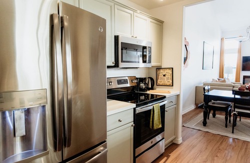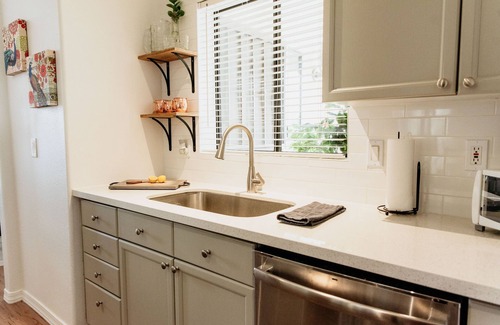 This home has 2 bedrooms. Both with queen size beds and 2 full baths. It sleeps 4 comfortably but also has a single futon sofa in the master bedroom and a single person pull out bed in the loft. All linens, bath towels, pool towels are provided. Smart TVs with NETFLIX, HULU and AMAZON PRIME are located throughout. The home also includes WIFI, washer/dryer and 2 car garage. The cozy galley kitchen has everything you need with stainless steel appliances and all your pots, pans, and tableware.