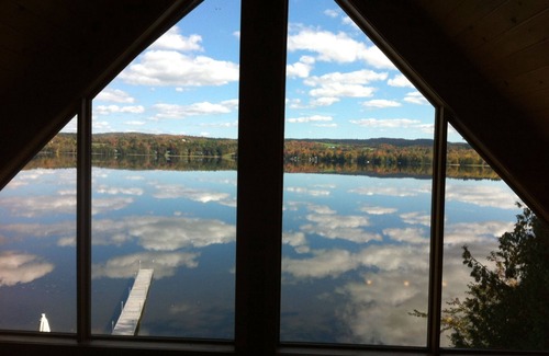 Avoid the hotels and the crowds. Contact Free Check-in and Check-out. Perfect location for all seasons to get away from it all! Charming 4 Season Log Sided home with a wall of windows facing beautiful Lake Salem, huge 48 foot wide deck overlooking the lake. New for 2022, Hot tub on the deck overlooking the lake!!! Private home with everything you need to enjoy a vacation doing whatever it is you love to do... relaxing, water activities ( 2 canoes, kayaks, 2 stand up paddle boards and PDFs on site for your use with no additional charge, available for use June through September) , fishing, playing tourist with Golf, Antiquing, Huge Indoor Waterpark (at Jay Peak Resort), Canada a 15 minute drive... and much much more. Huge gas grill on the deck for grilling. Easy and appealing gas fireplace. Game room with pool/ping pong table and theater room with 55 inch flat screen tv in the walk out basement with Radiant Floor Heating!!! A perfect spot to make those lasting memories!
