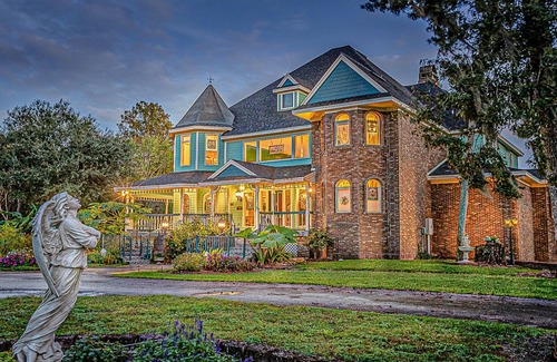 Conveniently located just 30-45 minutes from Orlando's famous attractions, including Disney World and Legoland, the Lakefront Victorian House for Time Travelers & Event combines the charm of a secluded retreat with easy access to everyday conveniences. Within a short drive, you'll find local grocery stores like Publix and Walmart, as well as a variety of renowned restaurants. This prime location allows you and your wedding guests to enjoy both relaxation and excitement, making it a picturesque setting for your special day.