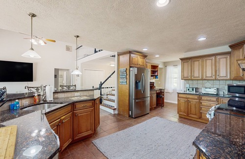 Head out to the pool deck for game of cornhole or drinks by the firepit. If you're an athlete, there's a spacious gym with a Peloton bike and Xterra selectable weight dumbbells. If you’re a gamer, a PlayStation 5 is loaded with games for all ages. Additional family games, toys for younger guests, and books are available.