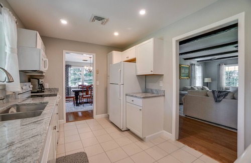 Your stay at the Lakehouse includes four spacious bedrooms, accommodating up to eight guests comfortably. The main house features three king-sized beds and one queen-sized bed, while the detached bungalow provides an additional king and queen bedroom. This unique arrangement allows for ample space and privacy, ideal for wedding parties. Enjoy modern amenities such as high-speed fiber optic internet, perfect for any last-minute planning or streaming your favorite wedding playlists. Please note that full-home rentals are available, ensuring that the entire venue is yours to celebrate without interruptions.