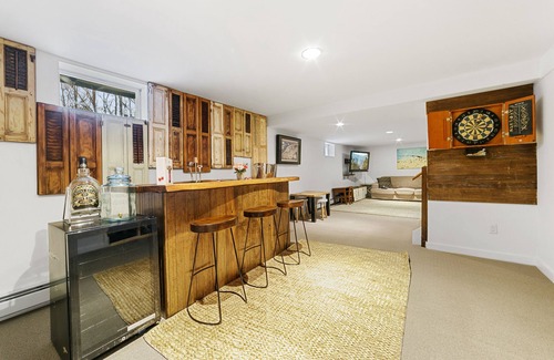 Conveniently located near attractions, Lakehouse in the Woods allows you and your guests to explore various nearby points of interest. Visit Bethel Woods for summer concerts or the Woodstock Museum year-round. Experience outdoor adventures by floating down the Delaware River, hiking scenic trails, or exploring the charming town of Narrowsburg with its delightful restaurants. In winter, skiing at Big Bear or Holiday Mountain is easily accessible, making this location perfect for year-round gatherings and celebrations.