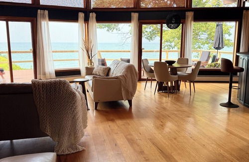 Newly renovated lakefront retreat on Lake Ontario! This spacious 5-bedroom home offers private beach access, a relaxing hot tub, and a sauna — perfect for family vacations, group getaways, or serene retreats.