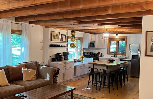 Enjoy a completely renovated 3 bedroom, 2 bath home located on an idyllic working organic farm. Nearby you can enjoy hiking, skiing, birding, fishing, antiquing and swimming. Open concept first floor with fully equipped kitchen with large eat in island and comfy living area with large TV. Farm stand on site.