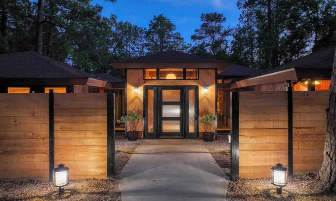 Come enjoy the best Lake Sam Rayburn has to offer! Lakeshore Lodge is perfect for extended families or groups of friends looking for a truly memorable escape. This waterfront, 5-bedroom, mid-century modern lodge has been newly renovated and features the latest modern amenities paired with all the nature and charm of the great outdoors. Nestled along the very popular south-eastern shore of the lake, you’ll be conveniently located minutes away from several boat launches, restaurants, hiking trails, and an 18-hole golf course.