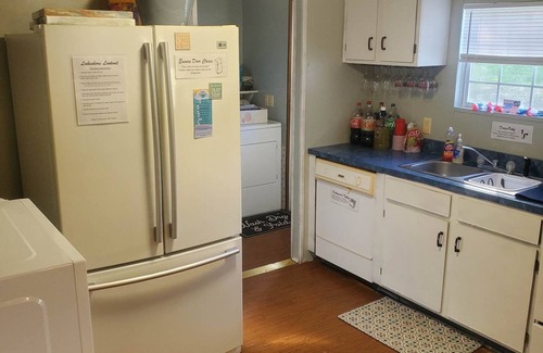 The kitchen includes an oven/stove combo, refrigerator with freezer and icemaker, coffee pot, and all the utensils to do any cooking or serving you desire.