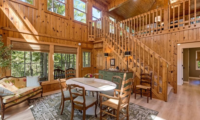- Lofted Entertainment Space: The comfortable lofted living area is surrounded by windows overlooking the woods and the lake, and is the perfect place to gather together to enjoy family time – watching your favorite TV shows on the smart TV, playing board games, sitting and reading or just soaking up the moments.