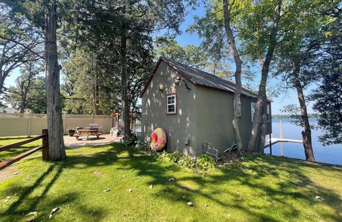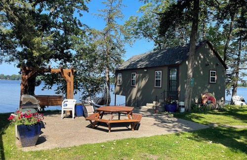 Welcome to our cozy, enchanting cabin right on the edge of Middle Spunk Lake. Everyone who stays here leaves with a different outlook on life. Enjoy peace and serenity while looking out the bay window, down into the lake. You'll see local wildlife, the sun set, or simply watch others boaters cruise around. Go for a swim in this clean lake, go fishing off the dock, or walk down to the scenic Lake Wobegon Trail for an amazing hike. There are 100 ft. of lakeshore available to swim or wade in during summer months, and all year for enjoying the view. Middle Spunk Lake is very clean, spring fed, and has a firm, manicured shoreline. A high quality lake well known in the area for swimming, fishing, kayaking, paddleboarding, and boating. During winter you can ice fish around the lake, on many lakes in the area, or take your snowmobile down the Lake Wobegon Trail. Available to use are a kitchen with stove, sink, refrigerator, coffee maker, and microwave. A washer and dryer are on site also. Outside you will find a firepit, grill, large swing, and a sandbox for the kids.
