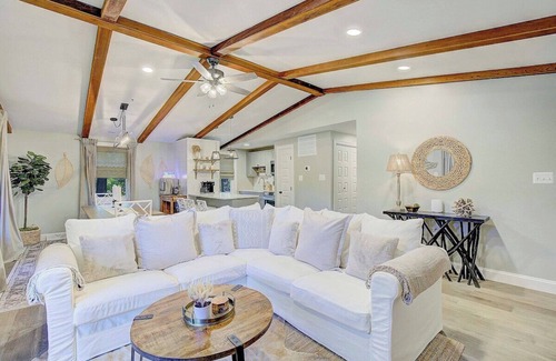 This is the tranquil getaway you're looking for! Bay breezes off the water, coffee on the screened porch in the morning, an afternoon kayak on the lake, an evening soak in the hot tub or a glass of wine on the pier at sunset while the kids play in the retro arcade.