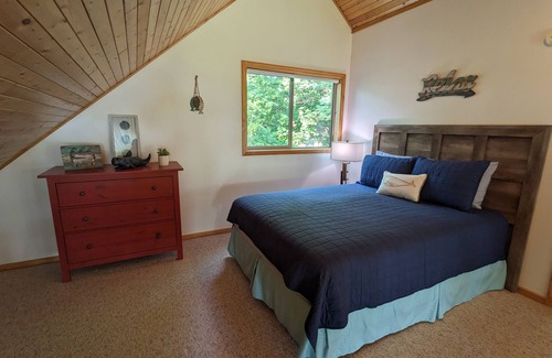 This adorable cabin features huge windows overlooking the lake. Two sets of sliding doors allow easy access to the big deck filled w/ outdoor furniture. The level lot makes it easy to wade into the water, or fish off the dock. The lake toys including kayaks, fishing poles, a lily pad, and paddle board mean endless water fun for all ages. The gradual water depth means the kids can safely play on the shore or splash in the shallow water. Located in the heart of lakes country- groceries, gas, restaurants, bars, golf courses, and fun boutiques in Ottertail are right at your fingertips. With amenities like charcoal & gas grills, fire pit, lawn games, linens, towels, beach towels- even a hammock- this is the relaxing vacation your family will remember for years to come!