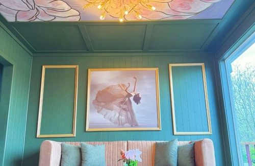 This breathtaking suite features a hand-painted floral ceiling and delicate accents that make you feel like you're walking through a garden.