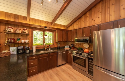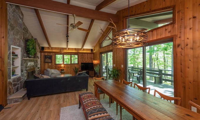 If you are feeling a call back to simpler days of lakeside cottages, warm summer sun heating the grass under your bare feet, long hot days spent splashing out in the water, and cool, starry nights spent gathered ‘round a fire sharing stories and songs–then Camp Lontano is the place for you! Set on a tranquil wooded lot located along a quiet lake cove, Camp Lontano offers guests ultimate privacy and rest. Sparkling, modern baths, thoughtfully chosen furniture pieces and artwork, and plush new linens round out this home’s welcoming interior. For those looking to wander a bit further, the sandy shores of Deep Creek Lake State Park, the village movie theater, the Honi Honi Bar and lots of favorite restaurants can all be reached with a quick drive! Book your stay today–the lake life is calling!