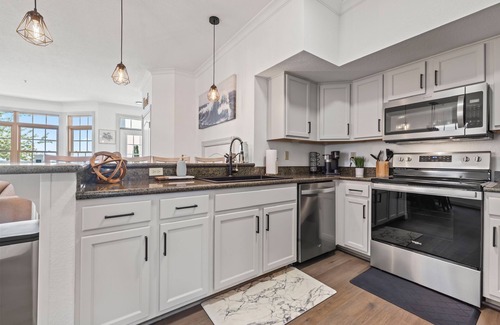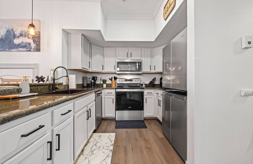 ✔ Fully equipped kitchen with stainless steel appliances, stocked with essentials like cooking oils, spices, and a complimentary coffee bar (Keurig + drip)