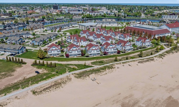 This lakeside condo boasts 2 bedrooms, 2 bathrooms, and a breathtaking view of Lake Michigan. Indulge in sunrise coffee overlooking the tranquil waters or sink your toes into the sandy shores mere steps away. Our pièce de résistance is a state-of-the-art full-body massage chair for ultimate relaxation.