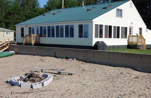 Nestled on the sandy beach at Colchester Point, this spacious 6-bedroom, 1.5-bathroom family cottage offers a serene retreat with breathtaking views of Lake Champlain. Wake up to the soothing sounds of lapping waves and gentle breezes, then enjoy your morning coffee on the glassed dining porch or unwind on the comfy couch in the enclosed front porch just steps away from the water's edge. With two canoes available for guest use, you can explore the lake at your leisure or simply relax on the sandy beach and soak up the sun.