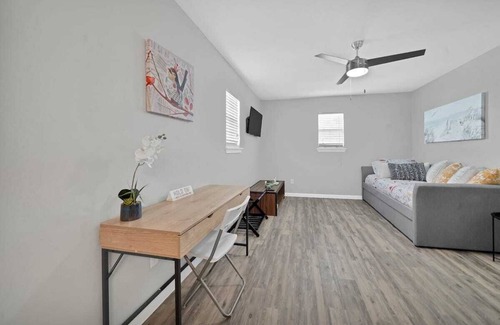 Located on the San Jacinto River, the Red Ear River Boat and RV Park is your laid back home away from home. Only 20 minutes from downtown Houston, this is the perfect place to spend a relaxing time in a very calm environment. This listing is for a cabin studio suite designed for a maximum of two guests, located within the fully gated RV community. It includes full access and use of the gazebo, WiFi, fishing pier, boat launch, and picnic area. Perfect for getting away from city life to relax.