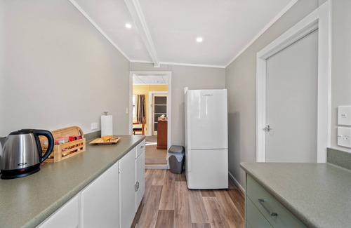 This two-bedroom, one-bathroom holiday home sleeps up to six people in comfort in the rear dwelling of this fully fenced property. Each bedroom features oil heaters to keep warm.