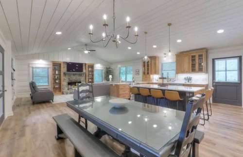 Lakeside Family Escape-Modern log home in secluded cove w/pvt dock, Sleeps 12 has 5 Bedrooms , 3 Bathrooms, and max occupancy of 12 people. The minimum rental for this property is 1 nights, but this can change depending on the season you plan on staying. Previous guests have given good rated it, and VRBO labeled it a top-rated House because of the excellent services rendered by the owner or manager of this House, and has consistently provided great experiences for their guests. Most families or guests that use it recommend it to their friends and some of them are repeat guests. House has a friendly neighborhood, and the Lynchburg has interesting places to visit. If you want to learn more about the House in Lynchburg, such as places to visit and things to do nearby, you can check below to learn more.