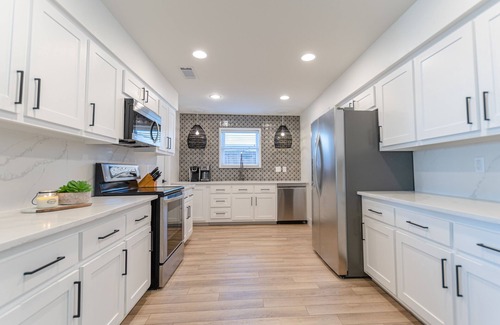 LAKEFRONT INTERIOR DESIGNER’S - Welcome to your dream retreat on Cedar Creek Lake in Mabank, Texas! Whether you’re planning a family vacation, friends' getaway, or a relaxing girls’/guys’ weekend, this lakefront home offers breathtaking open-water views and endless amenities. Updates include a completely remodeled kitchen, new wooden floors, all-new windows, custom bunk beds, and three updated full baths. The custom-designed bunk room sleeps 8 and includes a cozy TV hangout area for relaxing after a day of fun.