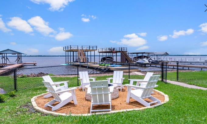 BOAT DOCK - Enjoy the private dock where you can tie up the Lilly pad for hours of water relaxation. Head up to the party deck, complete with rocking chairs, to savor the stunning evening sunsets. Want to explore the lake? Rent a boat at Lone Star Marina (903-432-2268) and maximize your time on the water.
