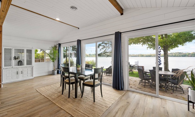 Experience Tranquil Bliss: Lakeside Retreat with Breathtaking Views and Exclusive Access. Serene Atmosphere, Modern Comforts, Private Dock, and Nature's Beauty Await. Your Perfect Getaway Awaits by the Water's Edge." easy at this unique and tranquil getaway. Perfect for summer and winter (Ice fishing).
