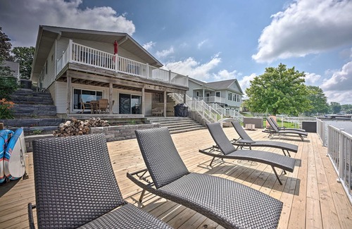 - Private on-site dock, top deck, covered deck, firepit & spacious layout area.