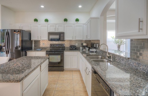 Beautiful renovated and fully airconditioned 3,456 sq ft villa with 7 Bedrooms, all with en-suite Bathrooms! Our resort is 24/7 guarded and gated and by far the best kept resort in the area. The landscaping team are on resort almost daily maintaining the highest of standards. The villa is not far from Lake Berkley's nature walking trail. Lake Berkley is just about 8.3 miles away from Disney ! The villa is rented out as a self-catering home