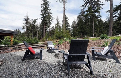 The home backs onto acres of protected forest and offers a large living space with an electric fireplace and kitchen with new stainless appliances, including dishwasher, microwave, and washer/dryer. There is a master bedroom with queen bed, loft with queen sleeper sofa + bunk room with 2 double beds. The comfy couch in the living room downstairs also has a queen bed for various sleeping options. There are 2 full bathrooms, one upstairs in the private loft, and one downstairs off the master bedroom. Beautiful french sliding doors lead out to a covered outdoor patio with large sectional couch, propane BBQ and propane and real wood fire pits. There are 2 TVs (upstairs and downstairs) with streaming services included. The large driveway fits 4 vehicles.