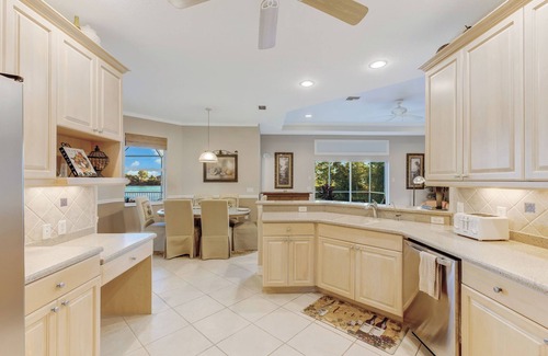 Welcome to The Joint Venture, a rare gem offering not just one, but two side-by-side villas—each featuring 4 bedrooms and 2 bathrooms—for a combined 8-bedroom, 4-bathroom retreat that comfortably accommodates up to 17 guests. Located on a tranquil lake, these villas each offer their own private heated pool and spa, giving you double the space and double the luxury to relax, reconnect, and enjoy Southwest Florida at its finest.