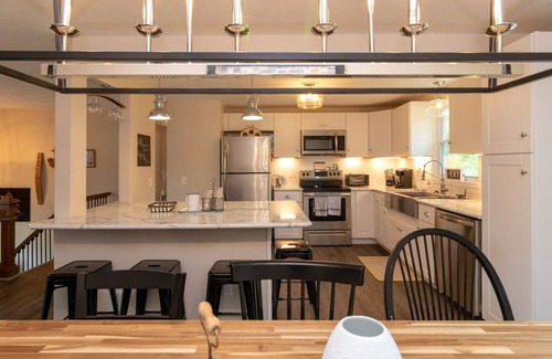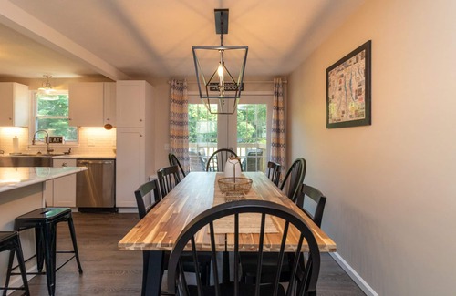 Right off the dining room is another deck situated on almost a ½ acre yard that will allow the little ones of your group to relax and play. Bring your favorite yard games and enjoy family time outdoors. A hot tub provides the perfect relaxing retreat from an afternoon of fun in the sun!