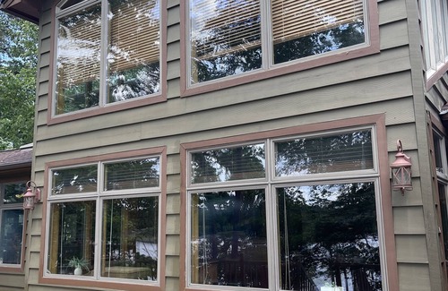 We've recently completed many updates to our home from painting all rooms including bathrooms, exterior driveway/walkway lighting to an all new, upscale, two story, boat dock that includes an overhead gazebo cover and seating for the entire family. The home also boasts great lake views from every bedroom, hardwood flooring throughout, granite countertops in the kitchen, food disposal, tile showers, room for 8 people around the dinner table plus seating for 4 at the adjacent bar. There is not one, but Two master suites (1 downstairs and 1 upstairs), each with a king mattress. The third bedroom has a queen mattress and we have a new trundle bed and new queen size blow-up mattresses. Each bedroom has its own private bathroom attached. The half bath is located off the kitchen. You'll enjoy covered parking in the carport as well. The laundry closet is located in the utility room. It includes an extra refrigerator/freezer, wash sink, and new high capacity, super quiet, washer and dryers.