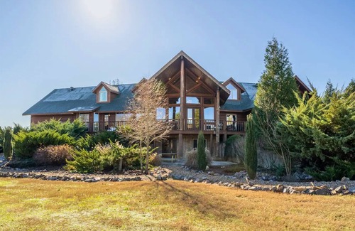 Welcome to the Lakeside Luxury Retreat w/Heated Pool - Sleeps 28, a stunning destination that offers an idyllic setting for your dream wedding. This exquisite property is nestled on 30 acres of secluded landscape, providing both privacy and breathtaking views for you and your guests. With accommodations for up to 28 people, it's perfect for a picturesque wedding celebration where memories can be made and cherished for a lifetime. Imagine exchanging vows surrounded by nature, followed by a reception that spills onto the expansive deck overlooking the tranquil lakeside.