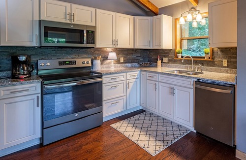 Fully Equipped Kitchen: Prepare celebratory meals or host a pre-wedding brunch in the modern kitchen, complete with essential appliances such as a refrigerator, oven, and dishwasher, making it easy to cater to your group's needs.