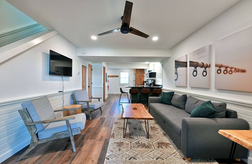This is Unit #3 - Mudding Bear. Open year round and located in Webb Lake, WI right next to the Lumberjack Saloon on beautiful Big Bear Lake. Each main level of these condos include a mud room, full kitchen with island seating, living room, and half bathroom. Living rooms feature a pull-out sleeper couch and walk out to private covered decks, all with direct views of the lake! Upstairs are two bedrooms with queen beds and a full bathroom. A fully appointed kitchen, thoughtful furnishings & decor, central air conditioning, Roku TV, and complementary WiFi ensure comfort during your stay.