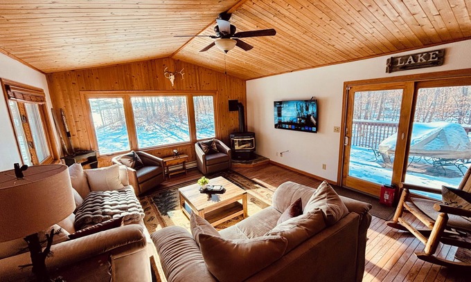 - Hilltop Chalet: Cozy log cabin retreat in beautiful Breezy Point, w/WiFi