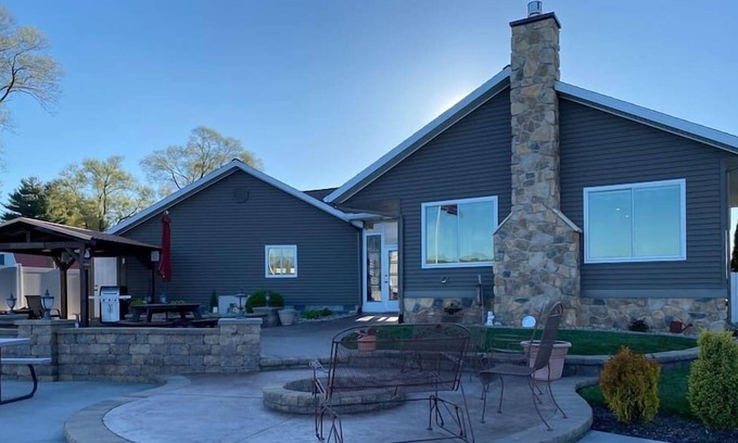 This waterfront home is located 10 minutes from the heart of Indiana Amish Country, Shipshewana, and just 1 hour from Notre Dame!