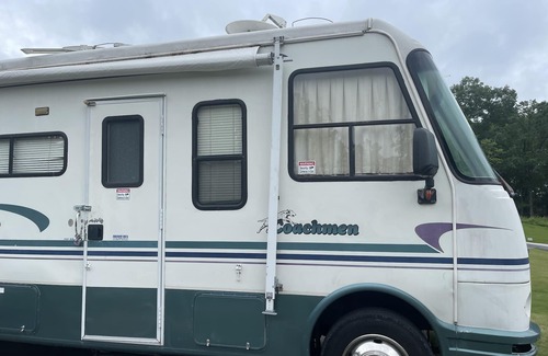 This RV getaway is located close to Lake Lanier, in a 34 foot Class A RV. It extends out For more room. It has a sink ,oven ,microwave, stove top ,just bring your own dishwasher, lol!Also it also has a shower,a private bathroom toilet with a door. You can close off the bathroom area for more privacy, it has a bathroom mirror and sink area.Then it has the queen size bed room, that’s not the only bedroom in this RV you can pull the couch out to a sofa bed, it comes with a mat, and the table area the table comes off and sits down in between the seats To make a small child bed ,You have the option to use the water and the electric for there are hookups available and you get to relax and hang out on the lake all day ,fish ,drink ,beer, camp, cook and just have a fun time!