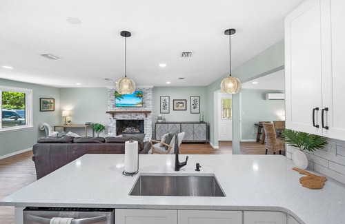 OPEN LIVING: The kitchen is situated adjacent to the living and dining area so everyone can be together whether lounging, dining or cooking! We outfit the kitchen with one roll of paper towels, a few starter trash bags and dishwasher pods for your first couple of days.