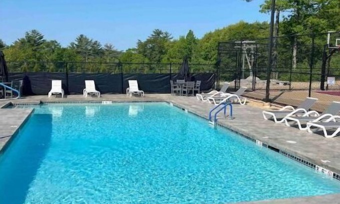 Top 10 destination and POOL/HOT TUB OPENS APRIL 21 2025!! ! Retreat to this newly updated Studio with Lake Winnipesaukee views. 1mi. to Weir’s beach. Stocked kitchen with brand new Queen Bed set & private outdoor patio, 55” TV, and AC unit. Centrally located in Lakes Region: Activities galore including mini golf & arcades. Close proximity to mountains, hiking, BOA Pavilion Concerts, boat, breweries, golf, dining. New $500k pool/hot tub, observation deck with sweeping views of lake Winnepesaukee, fire pit, basketball/pickle ball, parking
