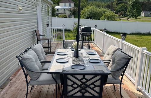 Come relax and enjoy the peace and tranquility of our property. The sunrises, the loons and early morning moose calls across the lake. Enjoy the outdoor deck for dining and relaxing. Coffee on front porch overlooking the lake. You may choose to walk to our private dock to watch the spectacular sunrise.